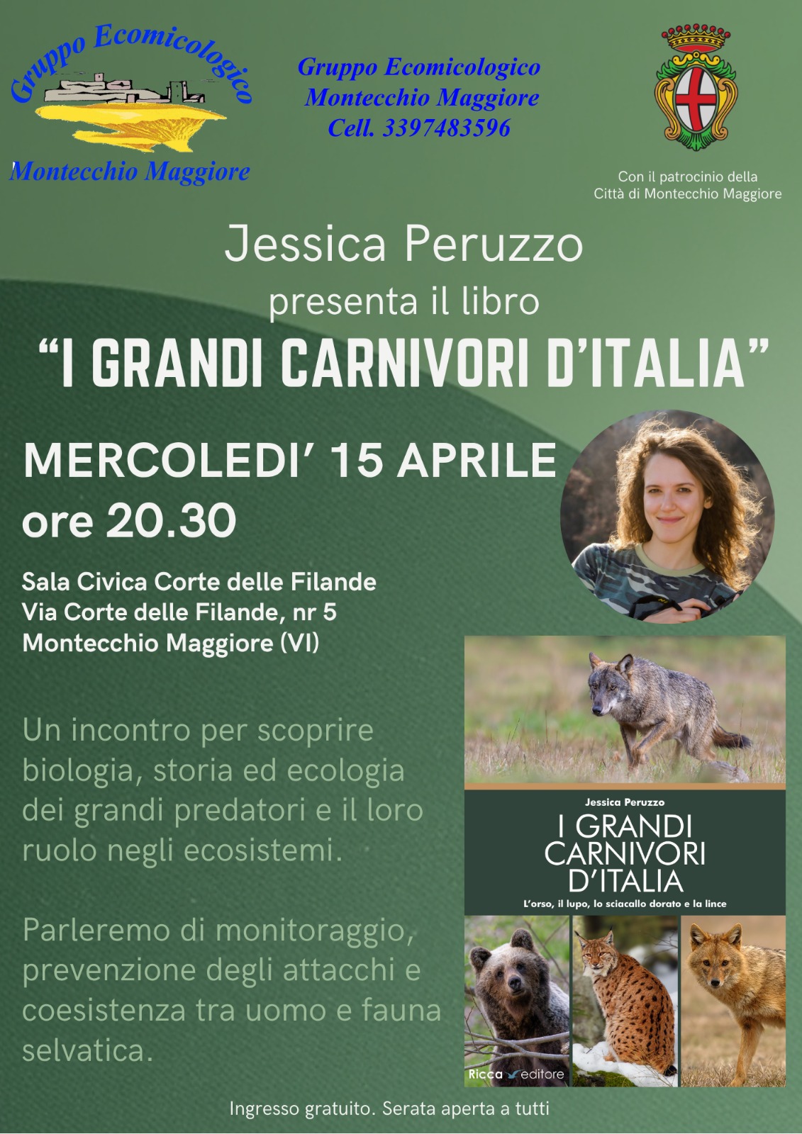 serata dedicata ai grandi carnivori d'Italia.  Jessica Peruzzo presenterà il libro su questo argomento: